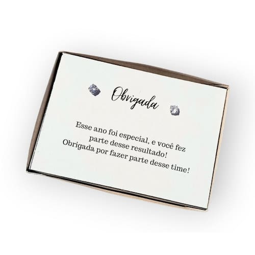 Brinco ponto de luz aço gratidão funcionária + Caixa presente com frase