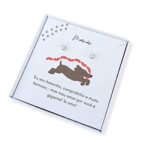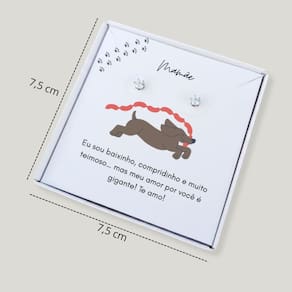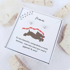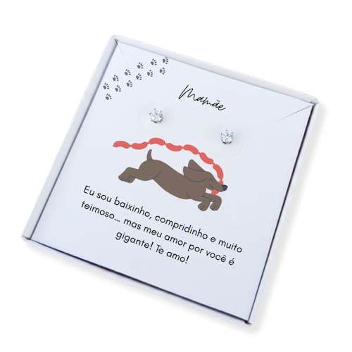 Delicado, moderno e cheio de significado! O Brinco Ponto de Luz em aço inoxidável é a escolha perfeita para presentear aquela mãe apaixonada por seu dachshund (salsicha). Acompanha uma linda caixa presente personalizada com frase para Mãe de Salsicha, tornando o momento ainda mais especial e emocionante.