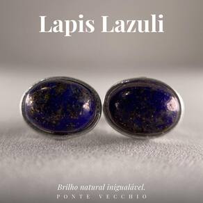 Brinco Prata 925 Lápis-Lazúli Oval Verdadeiro Ponte Vecchio