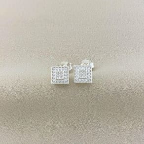 Brinco Quadrado Cravejado com Zircônia em Prata 925