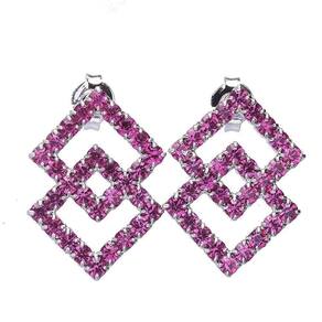 Brinco Quadrado Duplo Com Cristais Rosa Folheado A Metalico