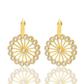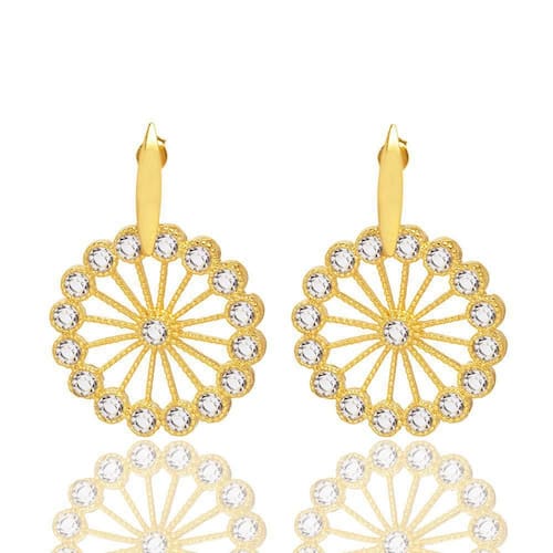 Brinco Redondo Com Pedras Cristal Folheado A Ouro 18K