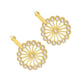 Brinco Redondo Com Pedras Cristal Folheado A Ouro 18k
