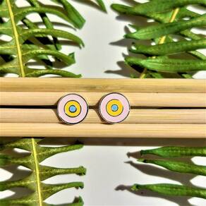 01 Par de Brincos Prata 925 com Resina nas Cores: Rosa Claro, Amarelo e Azul Claro.
