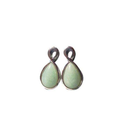 01 Par de Brincos Folheado a Ródio Branco com Pedra Quartzo Verde.