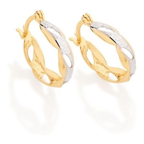 Brinco argola Rommanel folheada a ouro 18k com laterais onduladas, detalhes vazados e aplique de ródio.