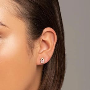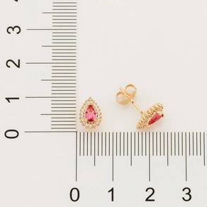 BRINCO ROMMANEL FOLHEADO OURO 18K. Brinco Pequeno No Formato Gota, Cravejado Por 40 Zircônias De 0,80 MM E 2 Cristais Gota De 3X5 Ao Centro (Par).