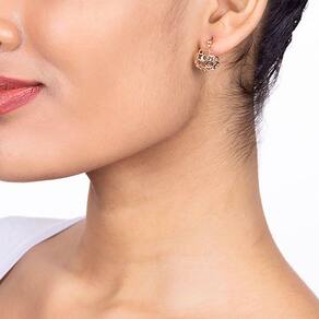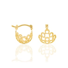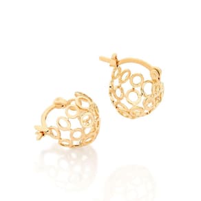 Brinco meia argola com detalhes de círculos vazados. med 1,5 cm