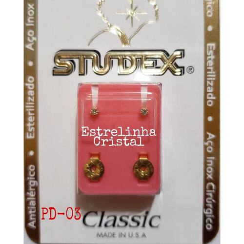 Brinco Studex Classic 2Mm Tiffany Cristal Pequeno Dourado - COR: DOURADO