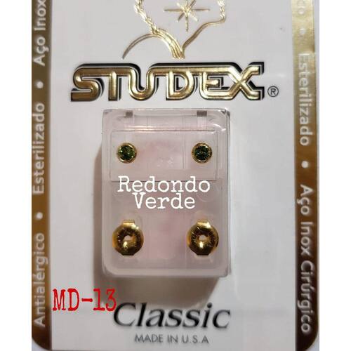 Brinco Studex Classic 4Mm Bezel Verde Medio Dourado - COR: DOURADO