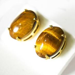 Brinco Topinho Cabochão Oval Pedra Olho de Tigre Banho Dourado, Brinco com Pedra Olho de Tigre Lapidado Cabochão com pino e tarracha banho dourado, lapidação manual totalmente artesanal a montagem é feita em banho flash dourado.