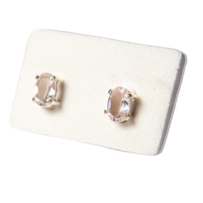 Brinco Topinha Prata 950 PEDRA QUARTZO SABONETE montagem em prata 950 com pino e tarraxa