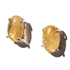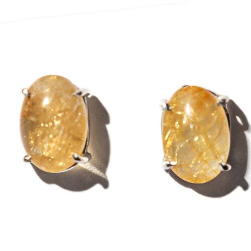 Brinco Topinho Pedra Rutilo no Quartzo Natural Cabochão Oval Liso 11mm Lisa montado na Garra Prata 950, Pedra Quartzo Natural de Boa Qualidade mineral não é pedra de laboratório como esta cheio o mercado, a montagem Prata 950 com garras para segurar a Gema. Lapidação da Pedra em formato de Cabochão Oval com Acabamento Liso e Base reta.