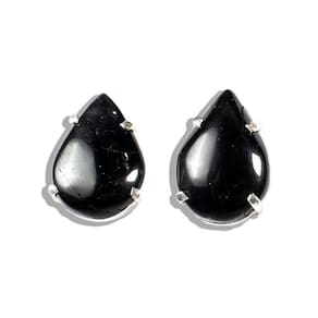 Brinco Topinho Pedra Turmalina Preta Natural Gota 15mm Lisa montado na Garra Prata 950, Pedra Quartzo Natural de Boa Qualidade mineral não é pedra de laboratório como esta cheio o mercado, a montagem Prata 950 com garras para segurar a Gema. Lapidação da Pedra em formato de Gota com Acabamento Liso e Base reta.