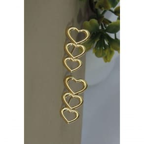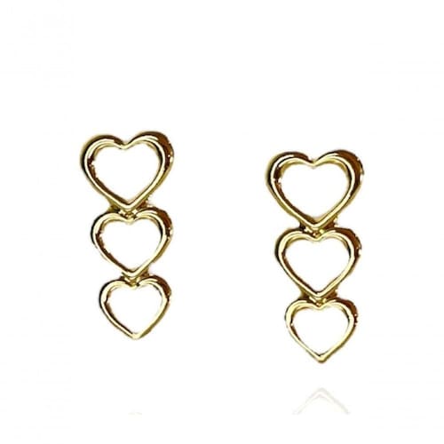 Este brinco encantador apresenta três corações vazados, banhado em ouro 18k. O design romântico e delicado é perfeito para adicionar um toque de amor e elegância ao seu visual. Ideal para presentes ou para uso em ocasiões especiais, este brinco combina beleza e significado. O acabamento em ouro 18k proporciona um brilho sofisticado, enquanto o design vazado adiciona um charme especial à peça.