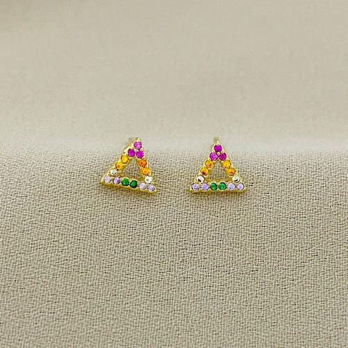 Brinco Triângulo Cravejado com Zircônia Colorida Banhado a Ouro