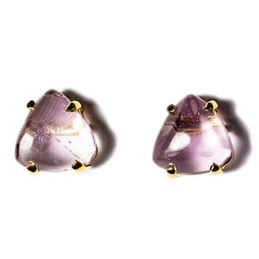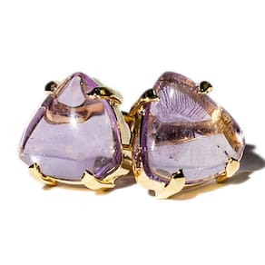 Brinco Cabochão Trillion Ametista Natural, lapidação feita totalmente artesanal. A montagem é feita com pino + montagem Presilha em banho flash dourado. Linda jóia, ideal para se presentear ou como mimo para si próprio.