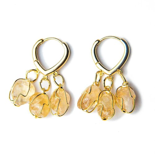 Acabamento dourado que harmoniza com o brilho natural do citrino