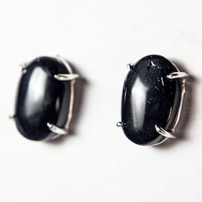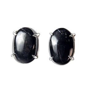 Brinco Topinho Pedra Turmalina Preta Natural Cabochão Oval 14mm Lisa montado na Garra Prata 950, Pedra Natural de Boa Qualidade mineral não é pedra de laboratório como esta cheio o mercado, a montagem Prata 950 com garras para segurar a Gema. Lapidação da Pedra em formato de Gota com Acabamento Liso e Base reta.