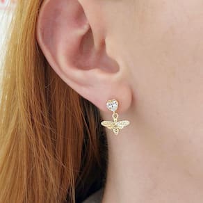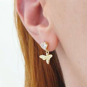 A VL traz à você um linda coleção de abelhas com revestimento em ouro. Este brinco foi elaborado com base em zircônia com formato coração e uma pequena abelha delicada e com design tridimensional, lembrando o realismo e a perfeição delas.