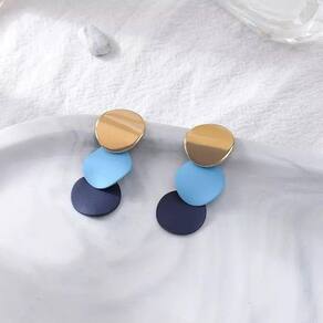Lindo par de brincos, modelo geométrico, com circulos, com tons de azul e dourado, perfeito para qualquer ocasião, com a elegância da beleza feminina. Peças de excelente qualidade, com muita personalidade. Detalhes: