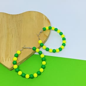 ? Modelo 2 – Brinco Argola com Pérolas Brasil • Tamanho da argola: 7 cm• Tamanho das pérolas: 6 mm (verde e amarelo)• Material da argola: Aço inoxidável (maior durabilidade e resistência)• Design elegante e moderno inspirado nas cores do Brasil