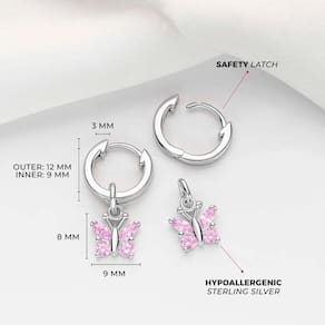 DETALHES: Os detalhes desses lindos brincos de argola boleta certamente deixarão sua filha muito feliz. Esses brincos de argola pendentes foram feitos com prata esterlina 925, tornando-os seguros e confortáveis para meninas com orelhas sensíveis. Dentro da boleta estão pedras cz rosa brilhantes que representam as asas. Se sua filha é obcecada por boletas, ela sempre amará esses delicados aros (de 5 a 15 anos). Uma caixa de presente está incluída para facilitar a entrega de presentes!