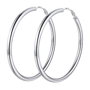 Brincos de argola grossa de aço inoxidável 316L. Joias elegantes para homens/mulheres de aço inoxidável polido de alta qualidade, duráveis, antialérgicas, duradouras e que mantêm a cor, boas para uso diário. - Material: aço inoxidável 316L, sólido, altamente resistente a ferrugem ou manchas. Hipoalergênico, adequado para peles sensíveis. - Tamanho: 80 mm x 80 mm, peso: 24 g/par, estes brincos de argola grossos são tudo o que seu guarda-roupa precisa agora. Um acessório fácil e clássico que combinará infinitamente com seus estilos favoritos. Sempre na moda. - Estes aros grossos e simples animarão suas roupas sem prejudicar sua simplicidade. - Não sazonal. Simples, mas elegante. Fácil de combinar. Lindos brincos de argola que podem ser utilizados com qualquer coisa. Ótimo para uso diário. - Os brincos de argola vêm com caixa e bolsa de veludo preto.