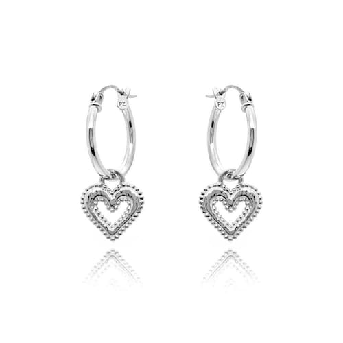 Brincos pequenos de argola dourada de dois tons com pingente de coração, disponíveis nos acabamentos de sua escolha: prata esterlina, ouro amarelo 14K ou ouro rosa 14K sobre prata esterlina