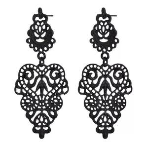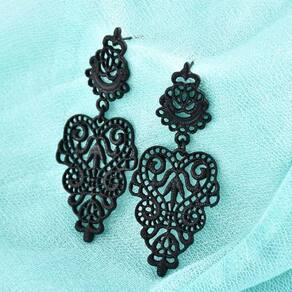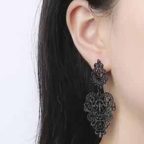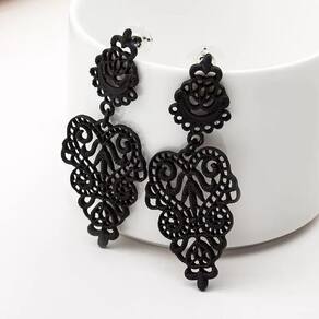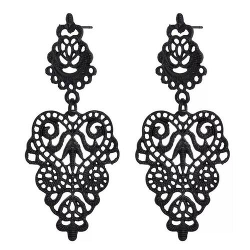 Lindo par de brincos, em formato de flores rendadas, na cor preto, perfeito para qualquer ocasião, com a elegância da beleza feminina. Peças de excelente qualidade, com muita personalidade. Detalhes: material de liga de zinco, de excelente qualidade. Tamanho: 6 cm x 3 cm origem: produto importado