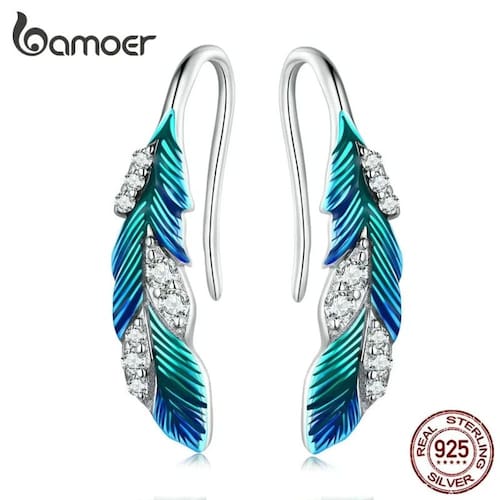 Lindos brincos com brincos de penas, feitos de prata 925, esmalte e processo Pavé CZ e banhados 100% novos Cor: prata, azul e verde O que é prata 925? Prata 925 ou também chamada de prata esterlina, prata esterlina ou Primeira Lei, é 92,5% de prata e o restante é outro metal utilizado, geralmente cobre. A prata pura deve ser combinada com outro material, caso contrário, a pureza da prata é muito maleável, fraca e macia. Sendo prata pura com essas características, dificulta a criação de joias com resistência, ou seja, que elas não se deformem.