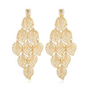 Brincos de Pressão Folhas Dourado Mulheres Festas Luxo