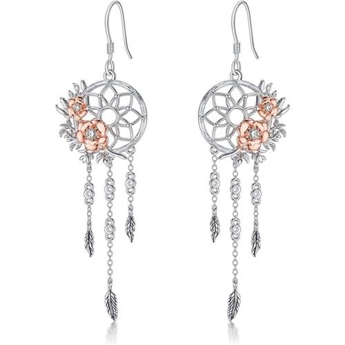 Brincos maravilhosos em prata 925 Dream Catcher com proteção galvanizada em ródio Tamanho: altura: 5 cm Largura: 1,5 cm Modelo exclusivo, contém zircão brilhante, para uso em qualquer ocasião, ótimo presente, para meninas, adolescentes, mulheres adultas, ficam bem com qualquer uso, muito confortáveis de transportar, antialérgicos, sem níquel, não poluem. Fácil de manter e limpar\ nInstruções de limpeza: Limpe com um pano prateado para polir joias, pelo menos uma vez por semana, para manter as joias brilhantes e evitar a deterioração\ nRecomendação de uso: Não use produtos de prata em praias, piscinas, chuveiros, pois a água contém cloro ou outros minerais que afetam a aparência das joias. Os anéis incluem uma elegante caixa de veludo