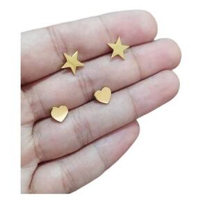 - Par de brincos infantis em aço cirúrgico banhado a ouro