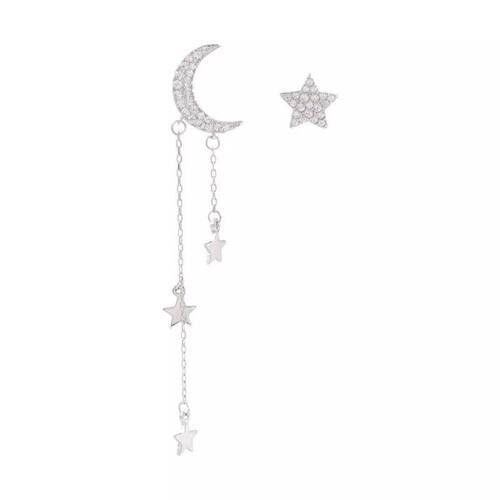 Lindo par de brincos, em formato de lua e outro no formato de estrela, perfeito para qualquer ocasião, com a elegância da beleza feminina. Peças de excelente qualidade, delicadas, sofisticadas e modernas. Detalhes: Material de prata 925, de excelente qualidade. Tamanho: 5 cm x 1 cm Origem: Produto Fabricante: Aravant Conteúdo da embalagem: 1 par de brincos e 1 caixa para manter as peças protegidas. Antialérgico livre de cádmio, níquel e Cinza. As bijuterias finas são banhadas em ouro, prata ou ouro branco e como qualquer peça banhada este banho pode sofrer desgaste independente de sua qualidade. Existem fatores que aceleram este processo: suor, contato com produtos químicos produtos de limpeza e cosméticos , cloro de piscina, água do mar, sabonete, entre outros produtos que podem agredir o banho da peça, fazendo com que ela volte à cor do Aço. Peças banhadas devem ser limpas apenas com uma flanelinha, de maneira leve. Seguindo estas dicas você terá sua peça por mais tempo. Ideal para ser Utilizado em ocasiões especiais. Uma ótima opção para presentear alguém especial.