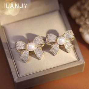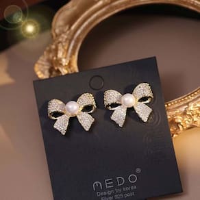 Compre Agora Brincos Feminino Laço Delicado Pequeno Pérola Strass Luxo!