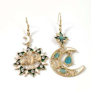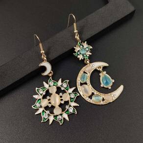Brincos Femininos de Lua e Sol Strass Mulheres Moda