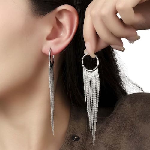 Então, se você quer adicionar um toque de brilho e glamour ao seu visual, não deixe de investir nesses brincos prateados com franja e argola solta. Com certeza, eles vão se tornar o destaque do seu visual e fazer com que você se sinta ainda mais deslumbrante. Afinal, toda mulher merece brilhar e se sentir poderosa em qualquer ocasião!