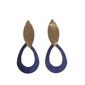 Lindo par de brincos, modelo geométrico, azul com dourado, perfeito para qualquer ocasião, com a elegância da beleza feminina. Peças de excelente qualidade, com muita personalidade. Detalhes: Material de liga de zinco, de excelente qualidade. Tamanho: 5 cm x 2,5 cm Origem: Produto Conteúdo da embalagem: 1 par de brincos e 1 caixa para manter as peças protegidas. As bijuterias, como qualquer peça podem sofrer desgaste independente de sua qualidade. Existem fatores que aceleram este processo: suor, contato com produtos químicos produtos de limpeza e cosméticos , cloro de piscina, água do mar, sabonete, entre outros produtos que podem agredir o banho da peça, fazendo com que ela volte à cor do Aço. As peças devem ser limpas apenas com uma flanelinha, de maneira leve. Seguindo estas dicas você terá sua peça por mais tempo. Ideal para ser Utilizado em ocasiões especiais. Uma ótima opção para presentear alguém especial. Marca: Amor Lindo