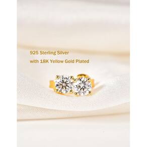 IMOLOVE Brincos de moissanite com 0,6 ct-3ct D Color Round Cut Lab Created Moissanite Brincos em prata esterlina com banhado a ouro branco 18K para mulheres e homens, 2 cm/par, Ouro amarelo Prata