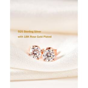 IMOLOVE Brincos de moissanite com 0,6 ct-3ct D Color Round Cut Lab Created Moissanite Brincos em prata esterlina com banhado a ouro branco 18K para mulheres e homens, 2 cm/par, Ouro rosa Prata