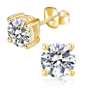 IMOLOVE Brincos de moissanite com 0,6 ct-3ct D Color Round Cut Lab Created Moissanite Brincos em prata esterlina com banhado a ouro branco 18K para mulheres e homens, 1 CT/par, Ouro amarelo Prata - ?Moissanite 100% real com mais brilho? Os brincos femininos são feitos de 100% MOISSANITA real na cor D e clareza VVS1. Não mancha ou descolore, e é mais econômico. As pedras têm 5 mm, 0,5 quilate x 2 = 1 quilate - Segurança dos materiais: os brincos para orelhas sensíveis são feitos com prata esterlina 925 e banhado a ouro amarelo 18K, que é 100% hipoalergênico, sem grafite e sem níquel. Estes brincos não deixarão sua pele verde, vermelha ou com coceira. - ?Fricção de volta ao poste de entalhe duplo?- As costas de fricção dos brincos de moissanite são fáceis de colocar e tirar. E não se preocupe que os preciosos brincos sejam perdidos ou soltos ao usar. - Presente ideal: este brinco criado em laboratório vem com uma caixa delicada como um presente perfeito para qualquer ocasião, como presente de aniversário, presente de dia dos namorados, presente de dia das mães, noivado, promessa, feriado de Natal, enfeite de ano novo, fantasia, casamento, aniversário, presentes para mulheres, presentes para mãe, presentes para sogra, presentes para esposa, presentes para filha, presentes para tia, para melhor amiga, avó, irmã e assim por diante. - ?IMOLOVE Jewelry?-IMOLOVE é especializada em criar alianças de casamento femininas de alta qualidade, modernas e acessíveis. Estamos dedicados a criar produtos excepcionais, com artesanato meticuloso e atenção aos detalhes, conquistando o amor e a lealdade de muitos clientes. Nosso compromisso de qualidade e valor torna nossos anéis a escolha favorita para buscar peças bonitas a um preço realmente acessível sem comprometer a excelência.