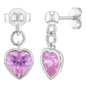 Simplesmente único!! Este lindo par de pequenos brincos pendentes para meninas ou pré-adolescentes é feito inteiramente de prata esterlina 925 e adornado com um coração rosa CZ que pende delicadamente neles. Um presente significativo de joalheria fina para um ente querido, embalado em sua própria pequena caixa de presente para sua conveniência.