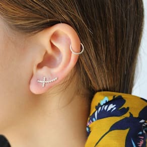 Alpinista ou alpinista. O modelo cruza as bolas, basta um buraco e você terá uma aparência diferente, sem a necessidade de mais furos. Você pode usá-los em casal ou com um aro diferente em cada orelha. Brincos de prata 925 sem níquel, simplesmente se apaixone por eles. Combinável com outros brincos e acessórios da Philippa JoyasCuidados: Não tome banho com eles, não os molhe, não aplique maquiagem neles, não aplique cremes ou perfumes. Evite o contato com produtos de limpeza ou abrasivos. Guarde suas joias em compartimentos separados.