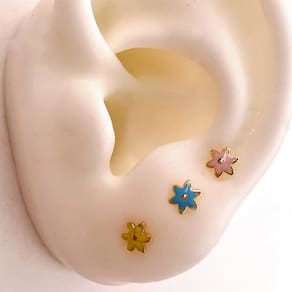 Las infaltables flores, estas esmaltadas de cor rosado, y darle color a esses mini looks. Largura do passador 7,8 mm, com parafuso superior. Aro acero quirúrgico bañado en oro 18 kt 5 micrascuidados:No te bañes con ellos, no mojarlos.No te maquilles, apliques cremas, ni perfumes.Evita contato con productos de limpieza o abrasivos.Guarde tus joyas en compartimentos separados.
