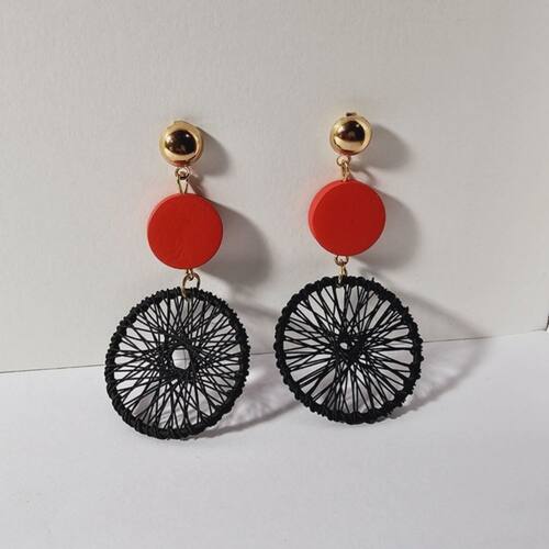 Brincos redondos simples de luxo para mulheres, liga e madeira, com 5,7 cm de comprimento.