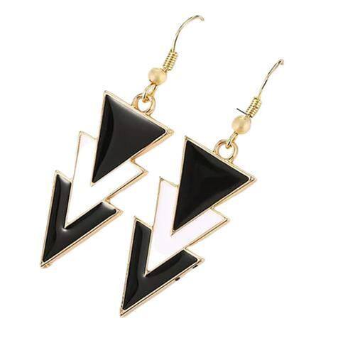 Brincos Pirâmides Preto Com Dourado Presente Dia Das Mães