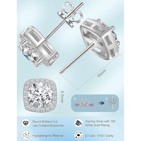 -?Material de qualidade?2 x 6,5 mm de moissanita, artesanato redondo de corte brilhante, pesa 1 quilate. Prata esterlina 925, feita para durar muito tempo! O material de nossos produtos contém apenas zircônia cúbica, prata esterlina 925 e moissanita de alta qualidade de 2 quilates. Nenhum outro ingrediente está incluído. Adequado para quase todos os ouvidos sensíveis. Esses brincos não deixarão sua pele descolorida, vermelha ou com coceira.