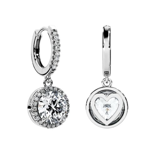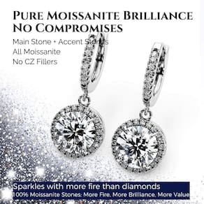 Estes brincos apresentam uma pedra central de moissanite radiante cercada por uma auréola de detalhes brilhantes de moissanita, proporcionando um brilho que supera em muito as alternativas de zircônia.