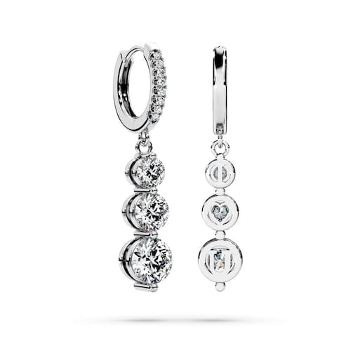Brincos SIGALIT Moissanite, três pedras, ródio, vermeil